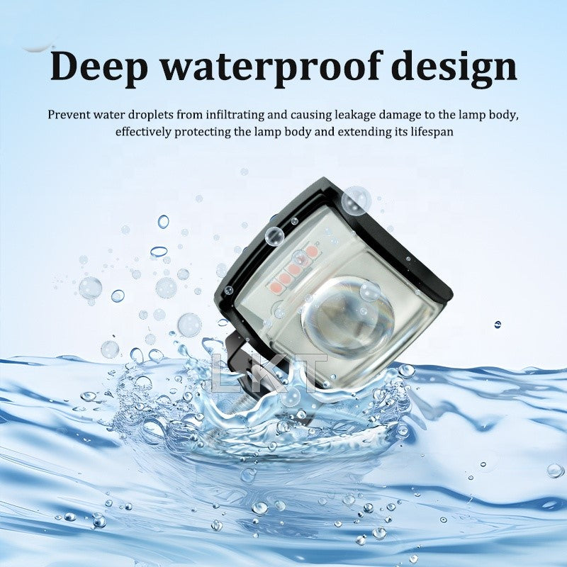12V–80V Waterproof LED Car and Motorcycle Light – Dual Color Yellow/White Front Position Headlight with Strobe for E-Bikes & Motorbikes